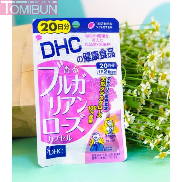 Viên Uống Hoa Hồng DHC Bulgarian Rose Capsule (20-Days Supply) là viên uống hỗ trợ sức khỏe & làm đẹp đến từ thương hiệu DHC của Nhật Bản, sử dụng chiết xuất tinh dầu hoa hồng 100% thiên nhiên từ hoa hồng Damask được tuyển chọn từ vùng đất Bulgari nổi tiếng với các dòng hồng cao cấp, giúp cung cấp hương hoa hồng hoàn toàn tự nhiên từ bên trong cơ thể của bạn. Ngoài ra sản phẩm còn được bổ sung thêm Vitamin E hỗ trợ trẻ hóa làn da.